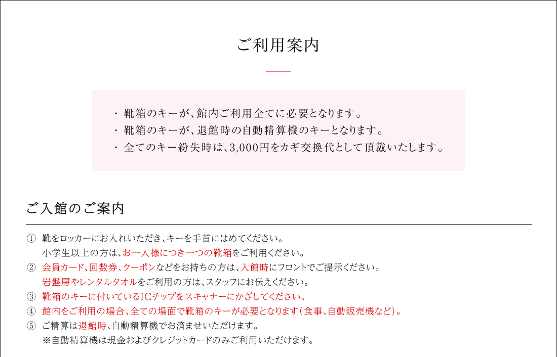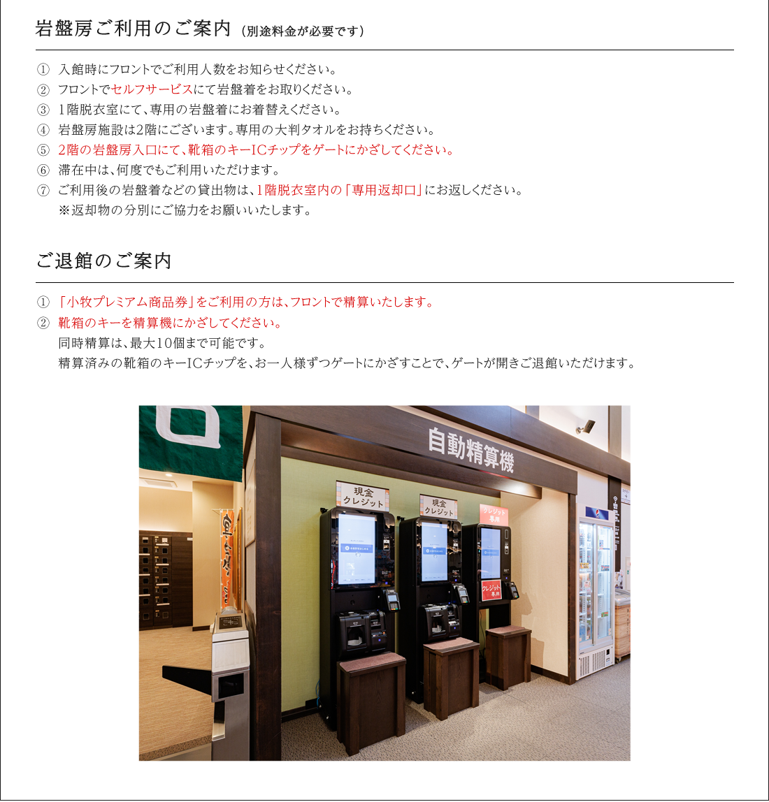 - ※岩盤房のみのご利用はできません。必ず入泉の受付をお願いいたします。