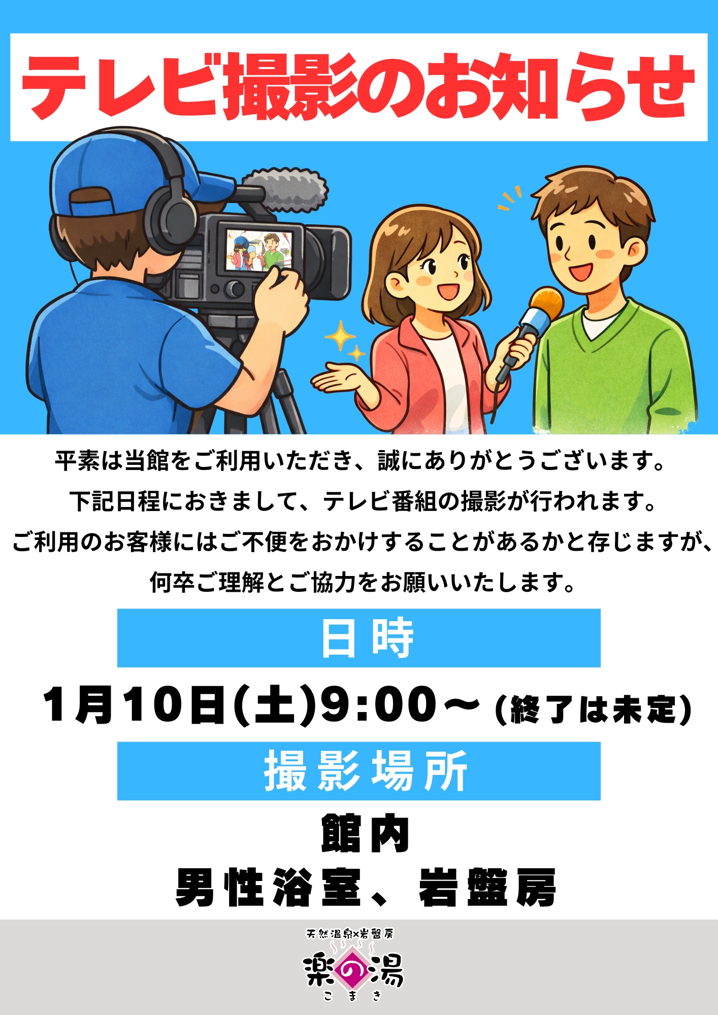 【1/10(土)】テレビ撮影のお知らせ