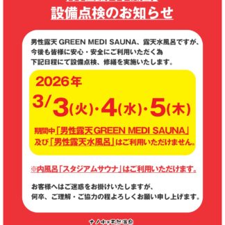 ※泥酔者、暴力団関係者、入れ墨、タトゥー(シール・ペイント等も含む)のある方、伝染病に罹患されている方、ペット連れの方の入館はお断りいたします。