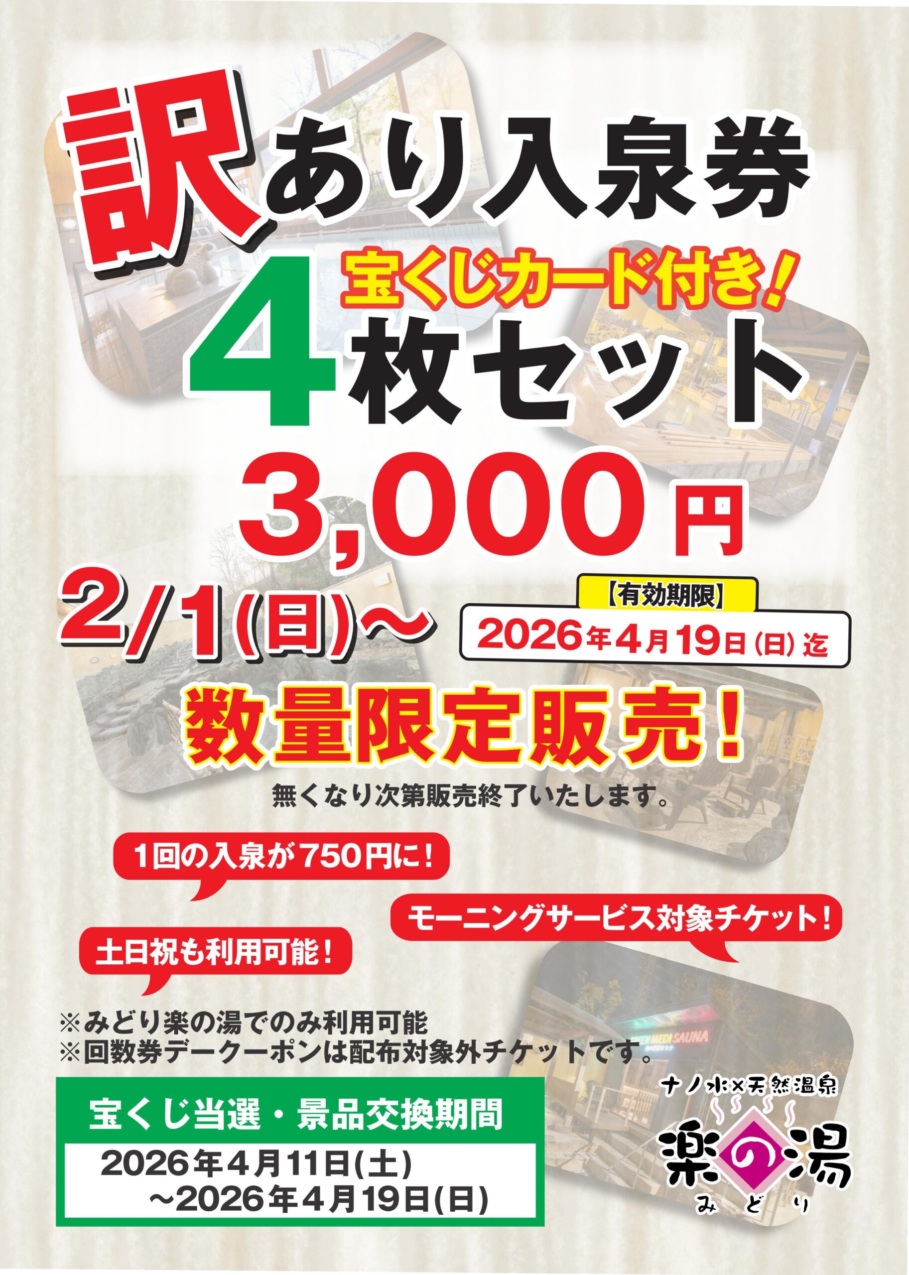 > 【訳あり入泉券4枚セット販売!】2/1~